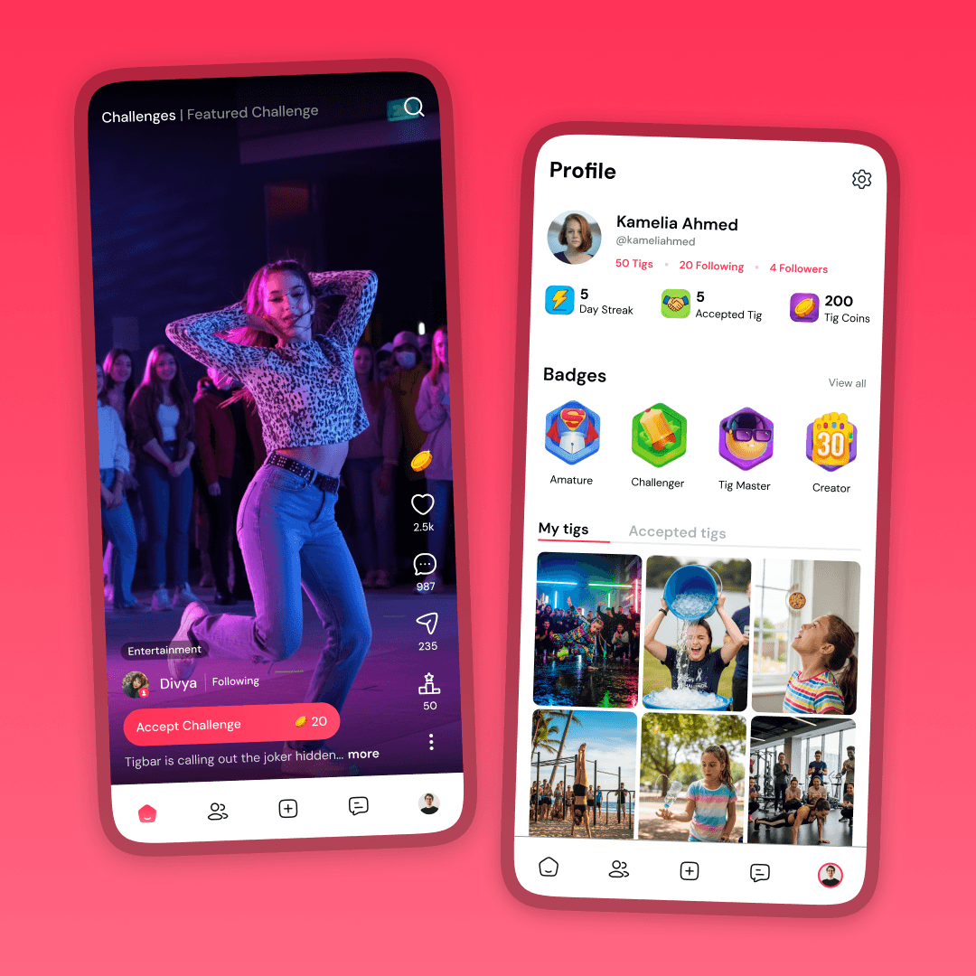 A complete UX/UI redesign of Tigbar, a Gen Z social media challenge platform, focusing on intuitive flows, playful visuals, and better engagement.